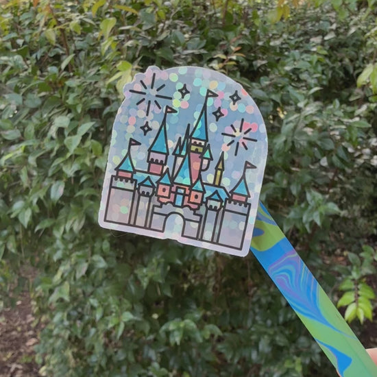 Disney Castle + Fireworks Icon Glitter Holographic Waterproof Sticker