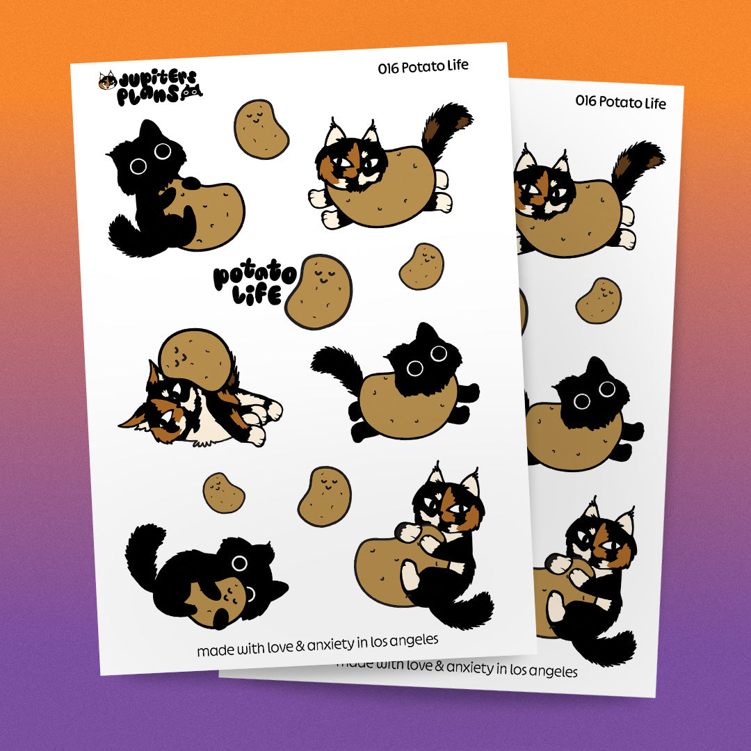 Introducing the I'm a Potato collection! Your favorite kitties, Jupiter and Midnight, are here to celebrate fall and Thanksgiving in the way they know how - potating. These stickers are a super silly way to bring a smile to your face during the week in the your planners!